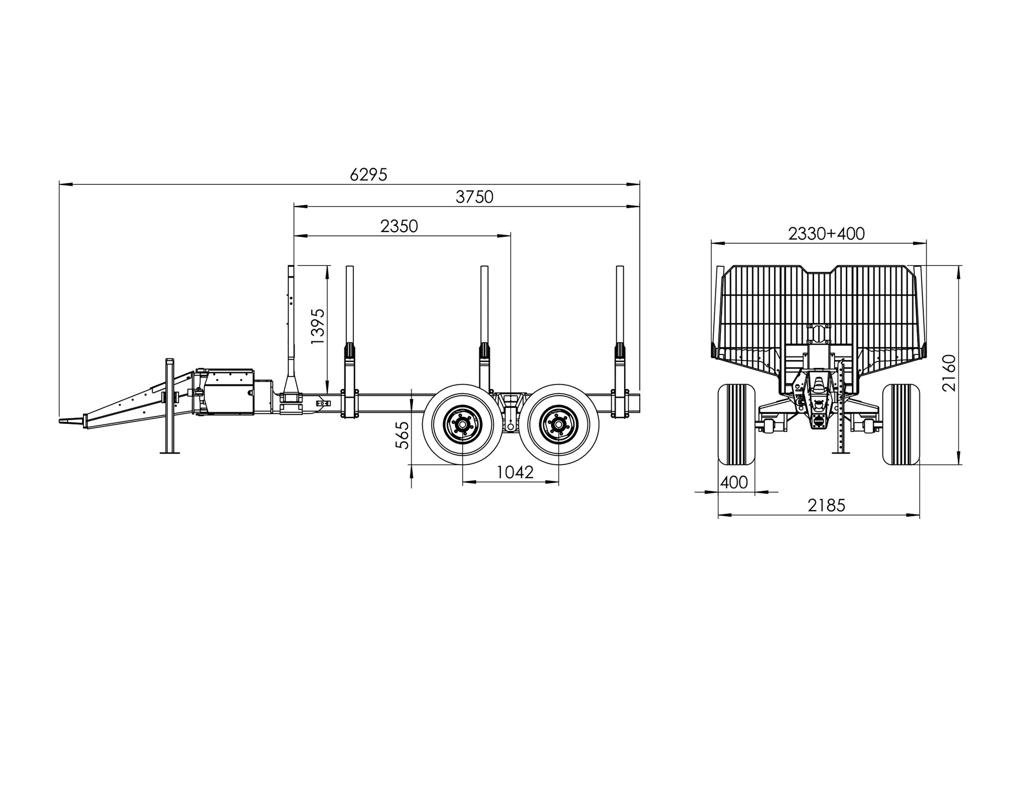 Remorque monopoutre d’une capacité maximale de 11 T.